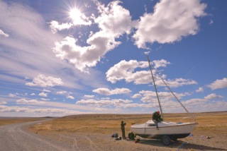 All the last necessities obtained, we set out to our starting point, which was situated about 200 kilometres to the south of El Calafate in the middle of nowhere. We chose a calm and rather straight section on Ruta 40 with light traffic and few slopes. The wind in Patagonia coming mostly from the West, it was here we found the perfect conditions for sailing.