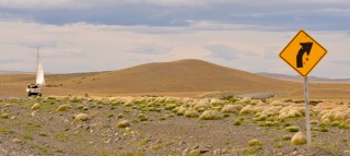 Nachdem die letzten Einkäufe erledigt waren, machten wir uns auf den Weg zu unserem Startpunkt, der ca. 200 km südlich von El Calafate mitten im Nirgendwo lag. Wir suchten uns einen ruhigen Abschnitt auf der Ruta 40, der selten befahren wurde, wenige Steigungen aufwies und überwiegend geradeaus verlief. Da in Patagonien der Wind zumeist aus westlicher Richtung kommt, fanden wir hier perfekte Segelbedingungen vor.