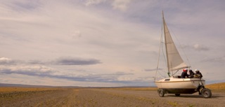 Bevor es aber losgehen konnte, musste zuerst einmal der „Trailer“ zum Landsegler umgebaut werden, was fast einen Tag beanspruchte. Die Spannung stieg: Abgesehen von einigen kleinen Testfahrten in Europa, war noch nicht klar, ob dieses Unterfangen überhaupt unter den realen Bedingungen in Patagonien funktionieren würde! Selbst bei der besten Vorbereitung gibt es Dinge, die man aus der Ferne falsch einschätzt. Auf gute Erfahrungswerte konnten wir auch nicht zurückgreifen; zumindest habe ich bis heute von keinem ähnlichen Projekt gehört. Es war also ein künstlerisches Experiment, dessen frühzeitiges Scheitern wir nicht ausschließen konnten. Dementsprechend nervös waren wir alle, aber auch voller Zuversicht, denn wenn wir nicht an ein Gelingen geglaubt hätten, wären wir wohl kaum nach Patagonien aufgebrochen, um dieses Abenteuer zu wagen.