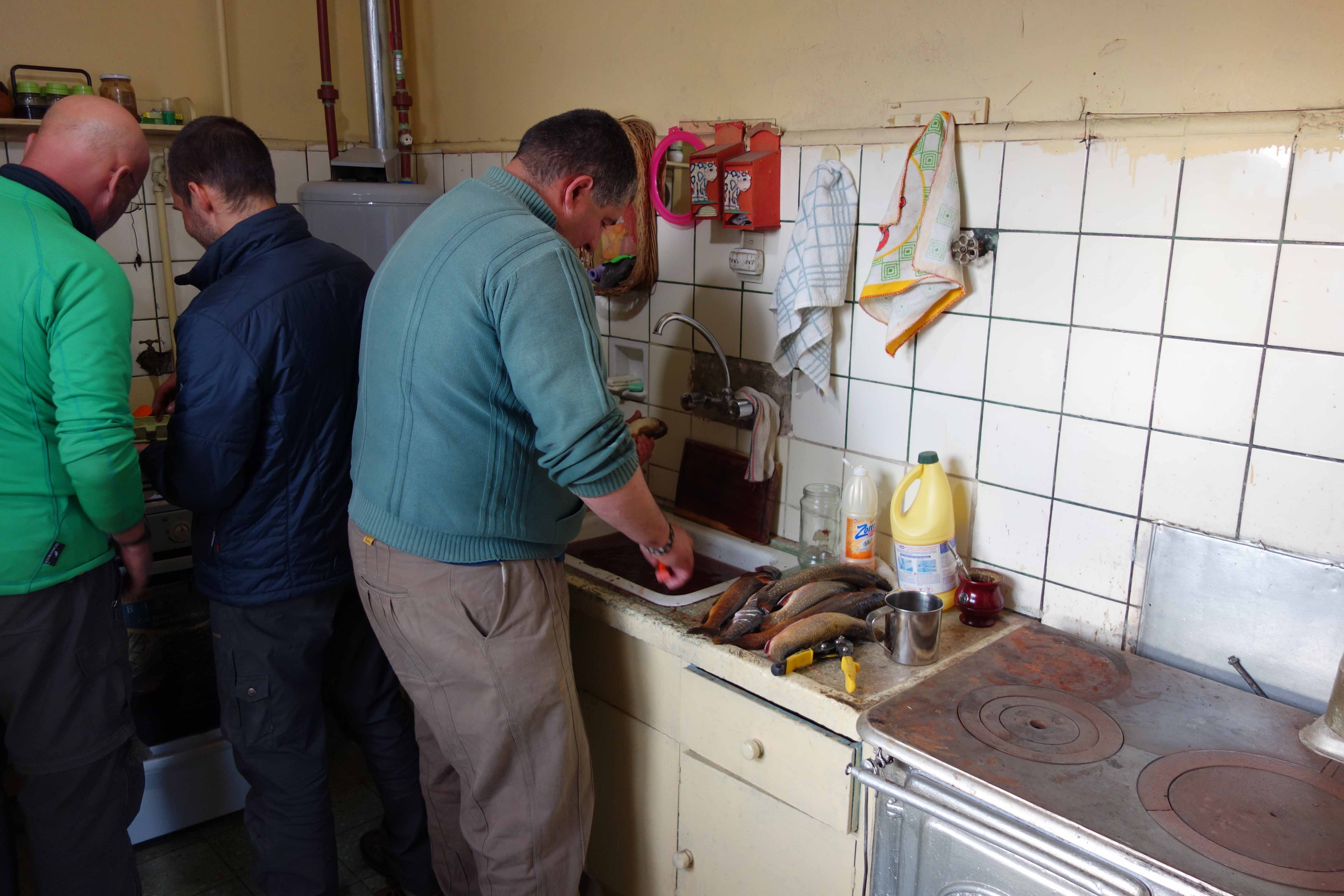 A friend of the policeman, who was visiting for two days to fish, came back in the evening with a great catch: 12 salmons. These were cooked as a delicious dinner for all of us.